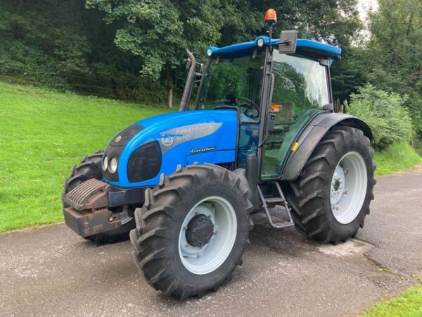Landini Powerfarm 100 tractor in very good condition. Year (June) 2009, only 1902 hours, Perkins four cylinder 90HP engine, 40kph 24×12 manual shuttle transmission, two manual spools, two speed PTO, trailer brakes, air con, sunroof. Michelin 13.6 R24 front tyres (80%) and Michelin 16.9 R34 rear tyres (90%). Very tidy one owner tractor, c/w set of seven 36KG front weights