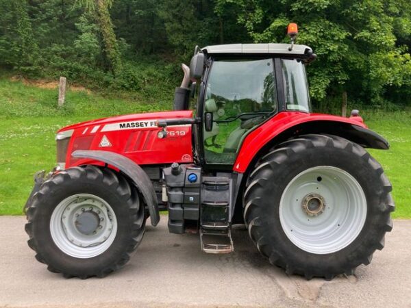 Massey Ferguson 7619 Exclusive in good condition. Year (August) 2013, 9497 hours, 50kph Dyna-VT vario transmission, front linkage, front axle suspension, cab suspension, air brakes, isobus, four electric spools, push out hitch, air con, climate control, data 4 screen, guidance ready, multipad joystick, air seat, passenger seat, heated electric mirrors. On Michelin 540/65 R30 front tyres and Michelin 650/65 R42 rear tyres (75% all round). Fully serviced, tidy one owner tractor