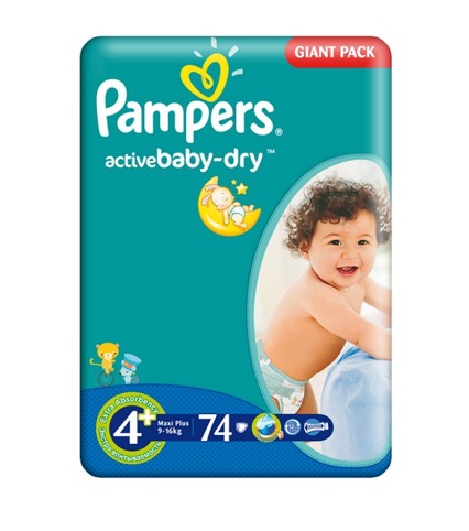 Diapers Pampers Active Baby 4+ Maxi + 74 pcs.